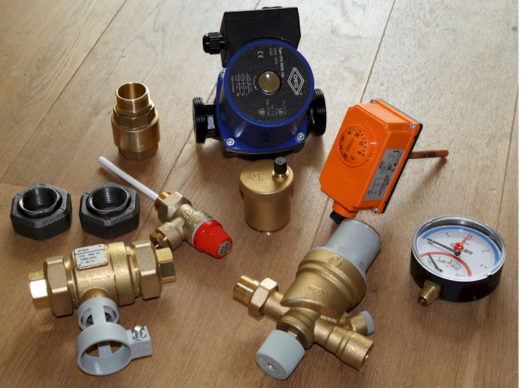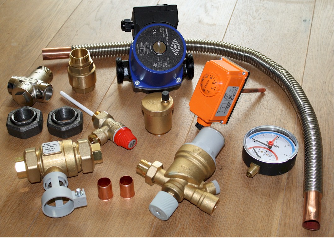 Beveiligingen en aansluitmaterialen t.b.v. houtkachel met CV aansluiting: